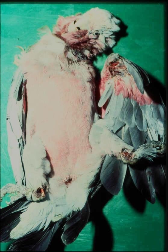- The findings of the “domestic violence” in cockatoos are partly based on a presentation by Drs. Jan Hooimeijer, during the international conference of the Association of Avian Veterinarians in New Orleans in 2004. The presentation was based on a survey of 20 cockatoo breeders, clients of the Clinic for Birds. The survey was carried out on behalf of the Clinic for Birds by Marleen Langen and Diana Mol as students at the Van Hall Institute in Leeuwarden. It involved 17 questions about the background of the breeder and 93 questions about the individual cockatoos. This involved 61 breeding pairs of cockatoos. 6 pairs of Moluccan cockatoos (Cacatua moluccensis), 2 pairs of White-crested cockatoos (C. alba), 4 pairs of blue-eyed cockatoos (C. ophthalmica), 4 pairs of Lesser yellow-crested cockatoos (C. sulphurea); 6 pairs of Goffini cockatoos (C. goffini);, 3 pairs of Naked-eye cockatoos (C. sanguinea), 1 pair of Long-billed cockatoos (C. tenuirostris), , 28 pairs of Rose cockatoos (galahs, or Eolophus roseicapillus)