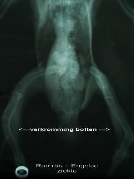 Severe bone abnormalities in young parrots/animals/children due to structural nutritional deficiencies. This mainly concerns a Vitamin D deficiency in combination with a Calcium and Phosphorus deficiency.
