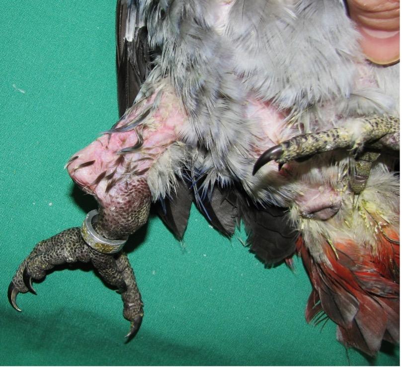 In parrots, Gray parrots are especially susceptible to Rickets. Curvatures of the bones in the legs, curvatures of the sternum and curvatures of the back are the most obvious symptoms.